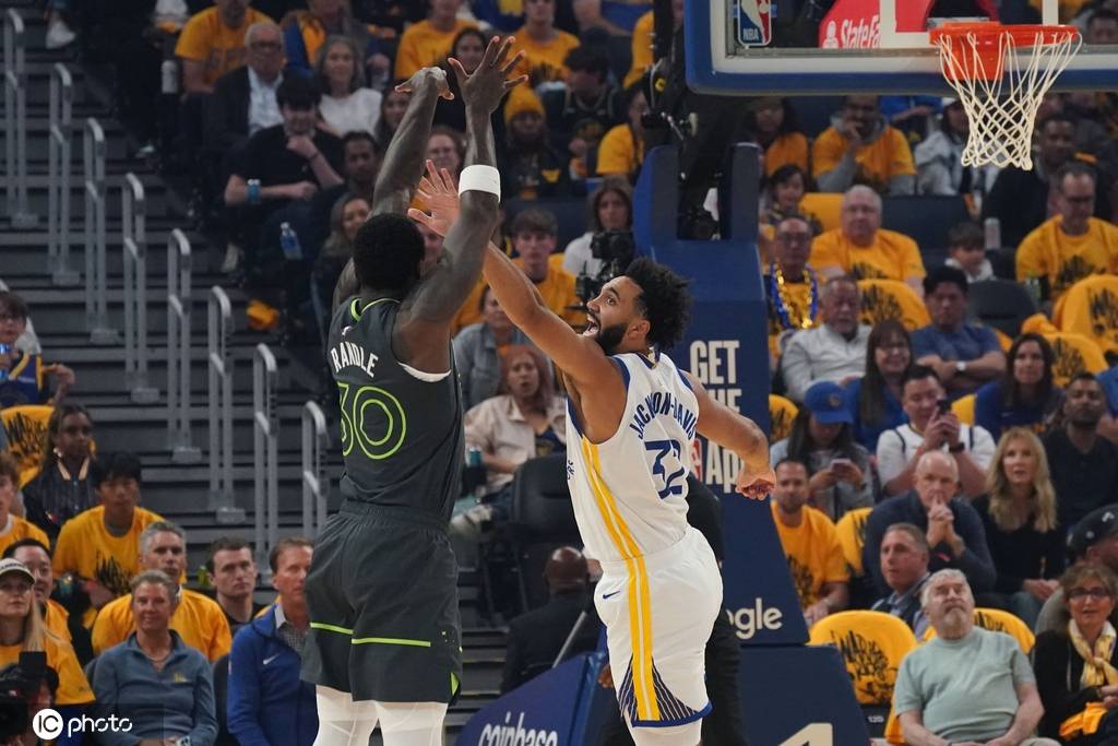 首节开打,兰德尔跳投得手,森林狼率先开张。但很快,巴特勒的突破抛射得手,勇士还以颜色。此后,双方展开激烈拉锯战,爱德华兹、康利三分连中,TJD连续空接吃饼得分,巴特勒的翻身跳投也中。本节打了4分多钟,双方打成8-8平。可接下来,狼队打出小高潮,随着爱德华兹上篮得手,客队领先到8分。勇士队十分顽强,进入本节后段,他们又回敬一波高潮,巴特勒读秒强杀迪温琴佐打板命中,单节打完,勇士与狼队打成21平。